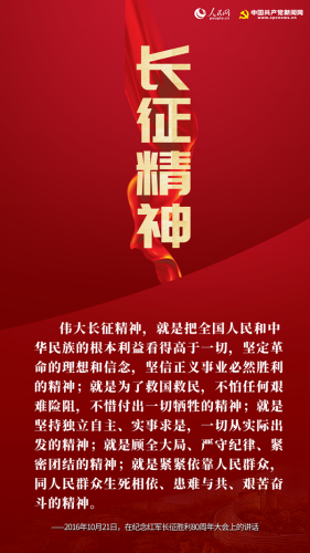 “不論我們的事業發展到哪一步,不論我們取得了多大成就,我們都要大力弘揚偉大長征精神,在新的長征路上繼續奮勇前進。”——習近平